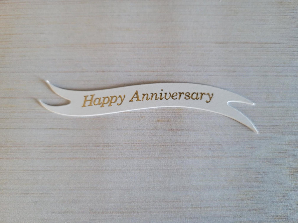 Banners - Happy Anniversary. Gold print on white card. Pack of 30